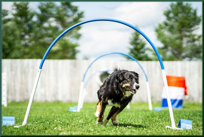 HoopersHoopers is an agility style sport that is low impact to the dog with minimal risk for injury and yet very challenging for the handler. The goal is to build distance handling using hoops, barrels and gates as ground-level obstacles. Handlers can train for more distance and less running or they can move with the dog.Hoopers is a great introduction to how movement from the handler affects the dog’s path and is a perfect foundation sport for young dogs wanting to get into agility later.It is also a great sport for retired agility dogs that still want to run and work with their handler but find the jumping in agility too hard. |