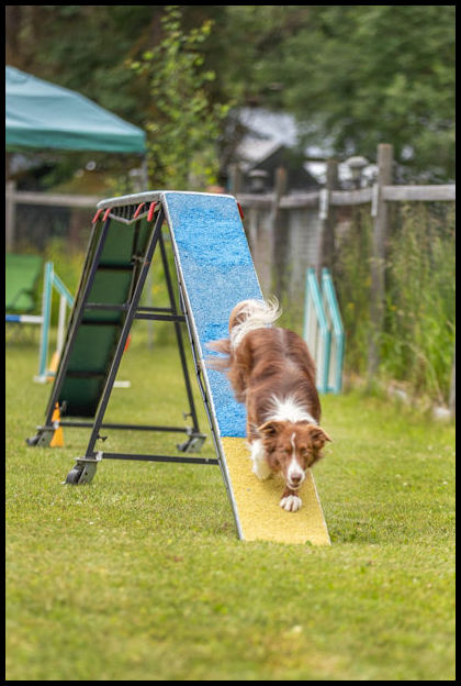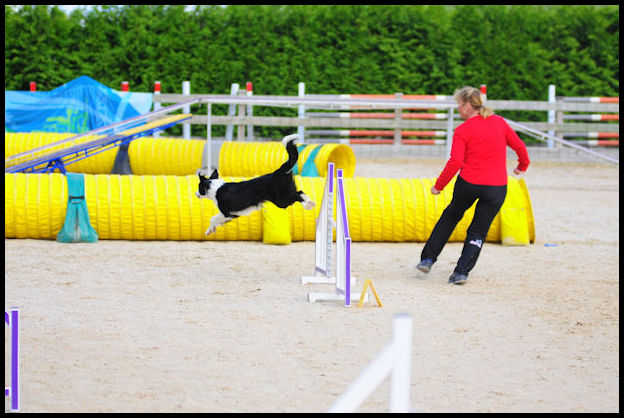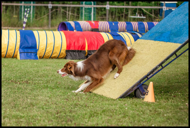 Dog Agility is a sport where the handler will direct their dog through a pre-set obstacle course within a certain time limit. Courses typically have between 15-22 obstacles, which can include tunnels, weave poles, various types of jumps, seesaws, Dogwalk and the Aframe. This is a timed sport so speed is part of the game. Which means both the dog AND the handler need to be agile!